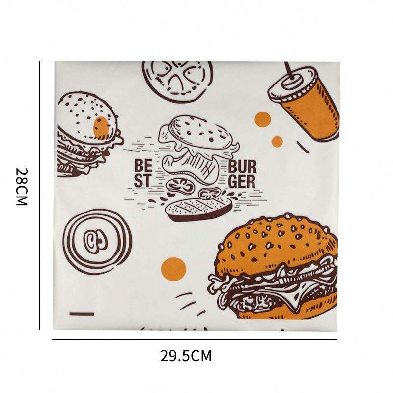 Papel de Envolver para Hamburguesas de Comida Rápida Impreso Personalizado, Lámina Antigrasa Recubierta de PE para Envolver Pasteles y Sándwiches