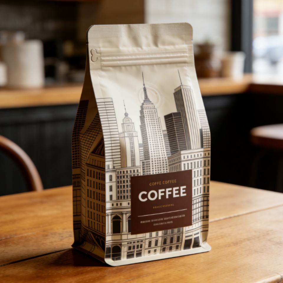 Bolsas personalizadas impresas para café en grano con cierre hermético, válvula, logo, fondo plano, duraderas para supermercado, aptas para alimentos y resistentes a la humedad.