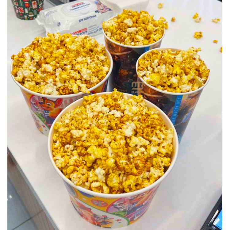 Cubo de palomitas de maíz con estampado personalizado, venta al por mayor, taza de embalaje de palomitas de maíz de 46oz, Cubo de palomitas de maíz con tapa de cúpula