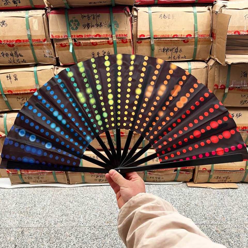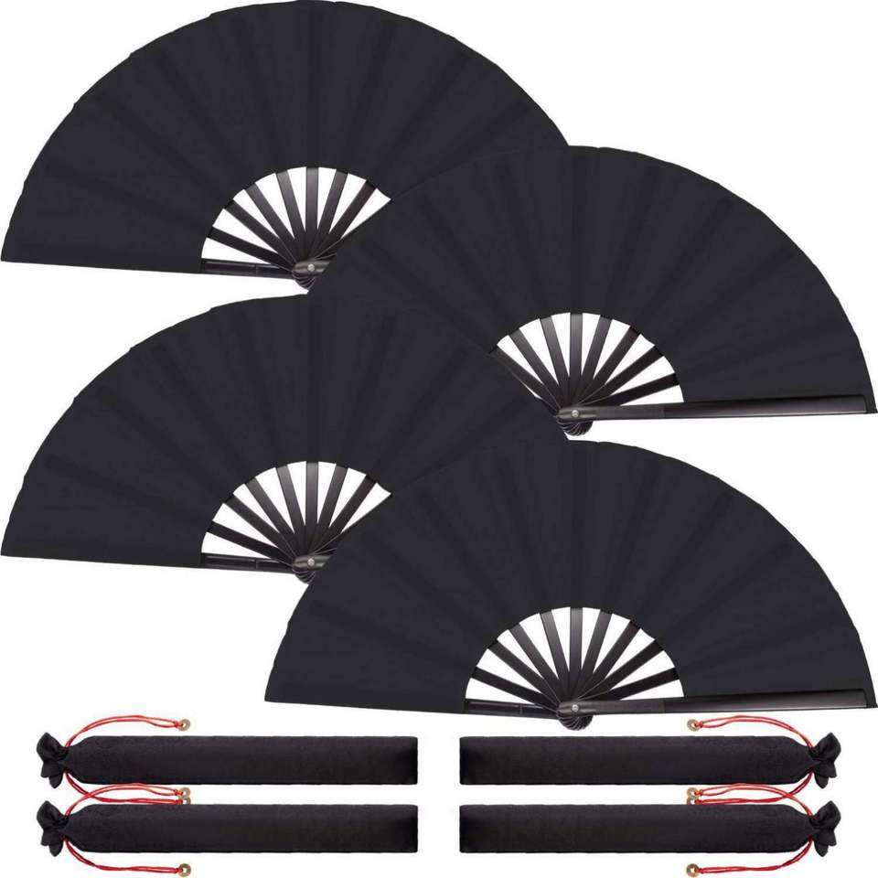Abanico de Bambú Grande Personalizado con Impresión, Decoración Plegable de Madera Negra para el Año Nuevo Chino, Halloween