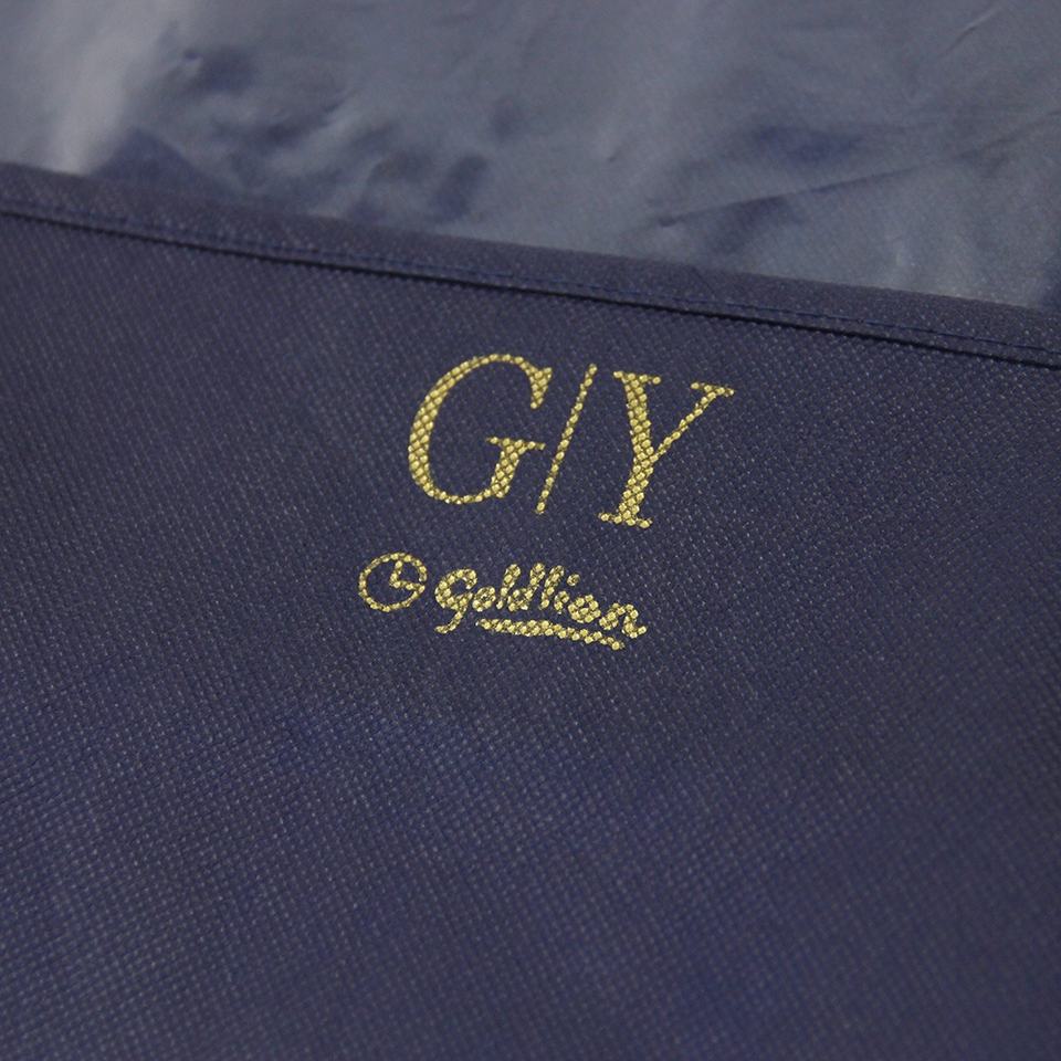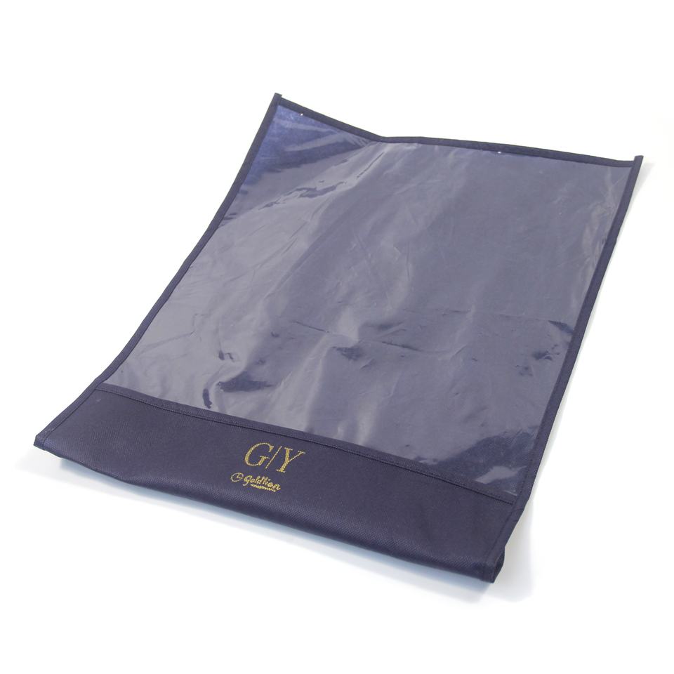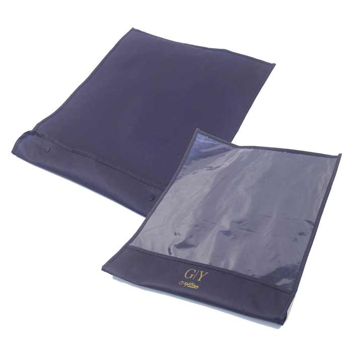 Bolsa de ropa azul oscuro con logotipo impreso personalizado para hombre, embalaje con ventana transparente, traje de corbata, pantalones