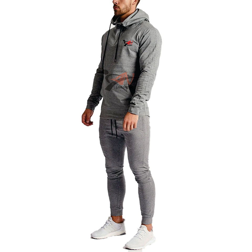 Sudadera con capucha y cremallera de cuarto flexible de chándal de alta calidad para hombre con logotipo impreso personalizado y pantalones de chándal para uso en el gimnasio