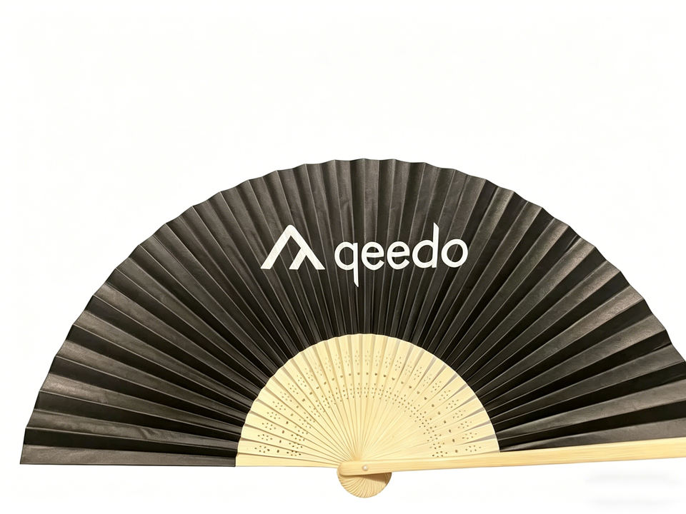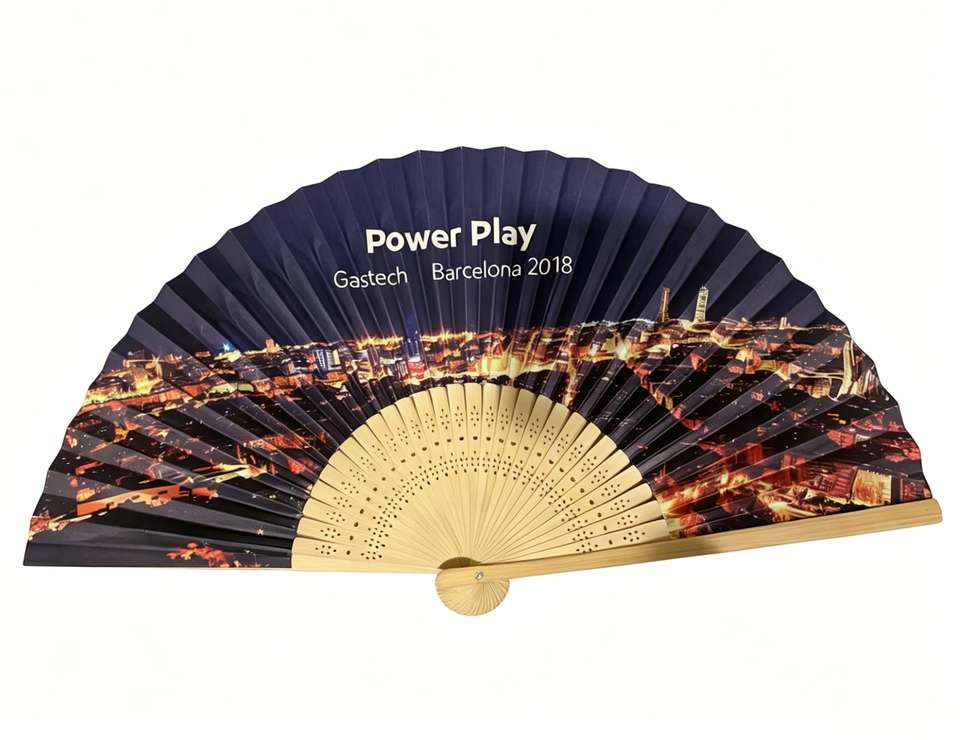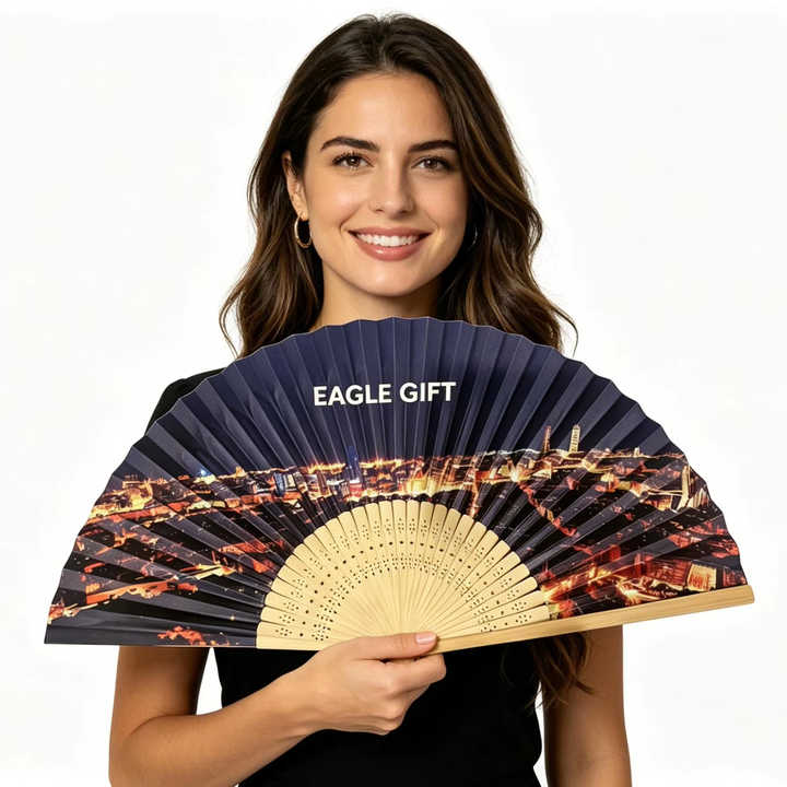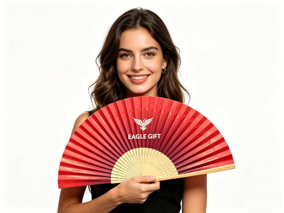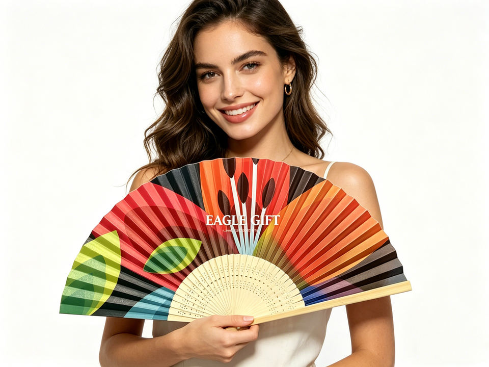 Abanico de Papel Plegable Redondo Portátil con Logotipo Impreso Personalizado y Mango de Madera para Bodas, Festivales y Eventos Promocionales