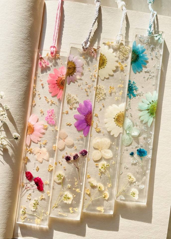 Marcapáginas de Resina Transparente 3D con Diseño de Flores Secas, Ecológico, con Logotipo Grabado Personalizado, para Estudiantes Escolares y Regalos Promocionales