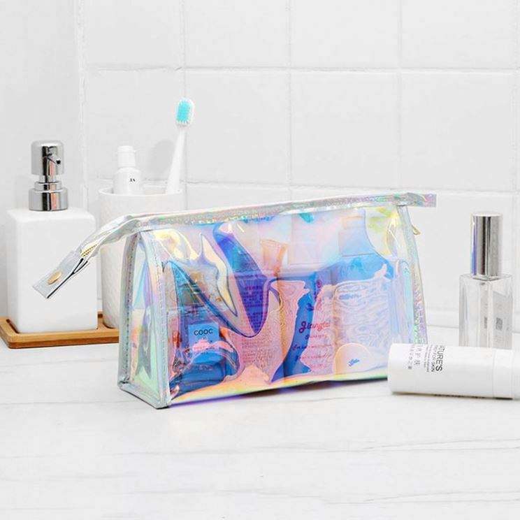 Bolsa de Cosméticos Transparente con Logotipo Impreso Personalizado, Bolsa Organizadora de Maquillaje de PVC Holográfico Impermeable