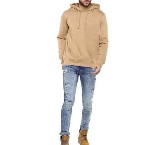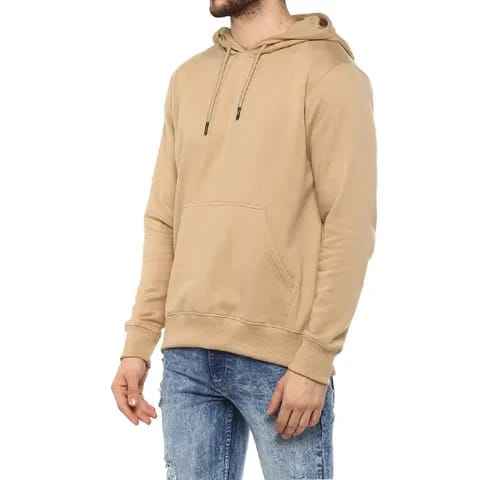 Sudadera con capucha larga de algodón básica de corte regular para hombre con estampado personalizado con bolsillo de canguro y técnicas de hojaldre en relieve