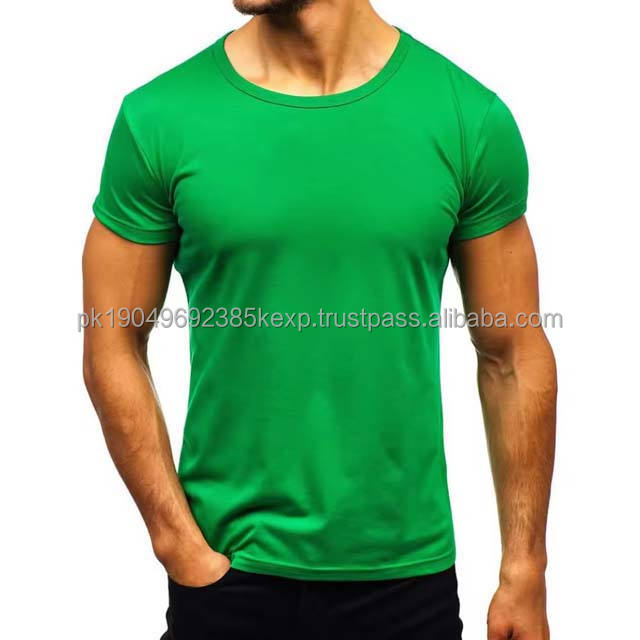 Camiseta Personalizada para Hombre, Color Verde, Cuello Redondo, Manga Corta, 100% Algodón, Poliéster-Algodón, Diseño Sólido