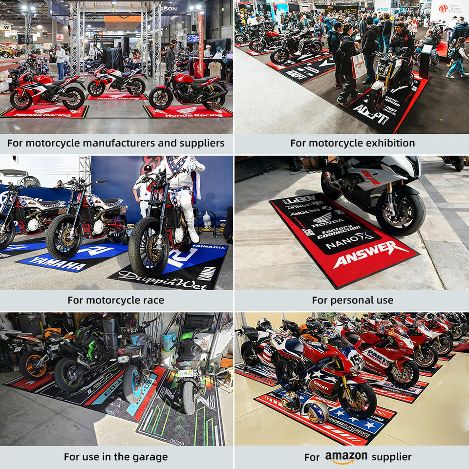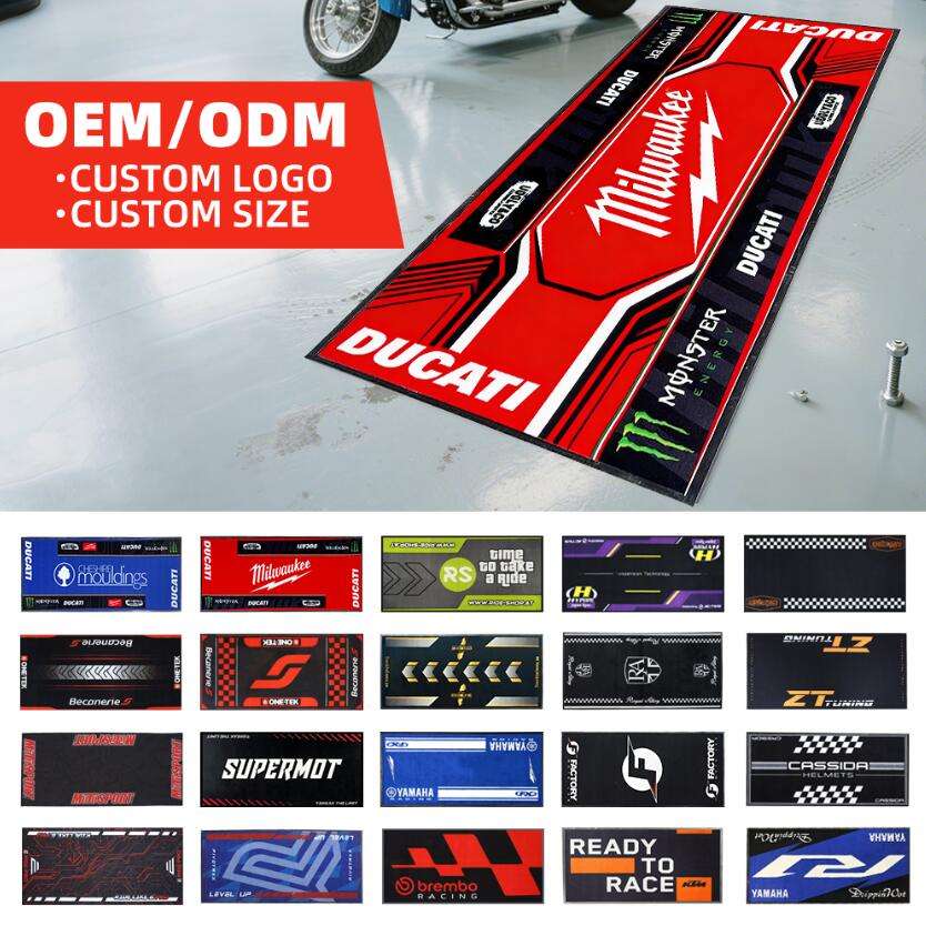 Tapete Personalizado para Garaje de Motocicletas, Tejido de Bucle, Material de PVC y Poliéster para Uso en Exteriores