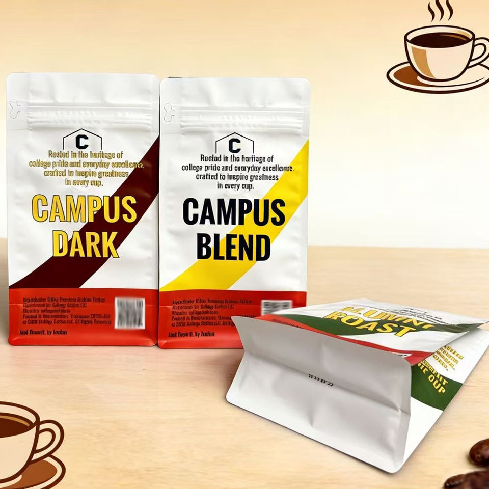 Bolsas de embalaje de grado alimenticio, impresas a medida, con base cuadrada, cierre de cremallera superior, a prueba de humedad y con soporte vertical, para granos de café.