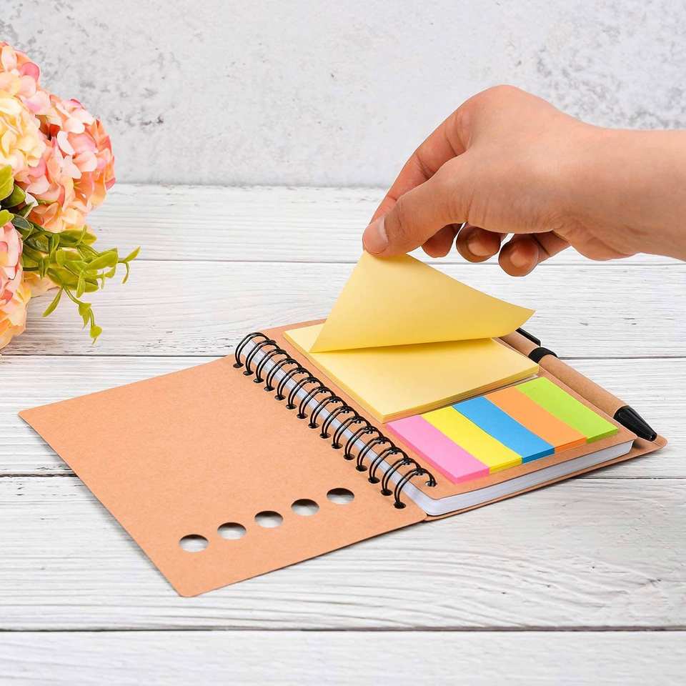 Cuaderno de Papel Personalizado, Mini Libreta Pequeña, Espiral, Ecológica, Notas Adhesivas, Bloc de Notas Kraft con Bolígrafo y Notas Adhesivas
