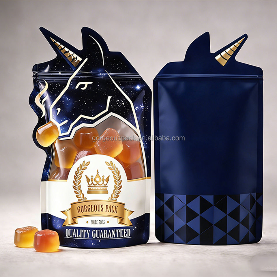 Bolsas y Cajas de Mylar con Diseño de Marca Personalizado, Impresión a Medida, Forma Irregular Única, Troqueladas de 3.5 Pulgadas