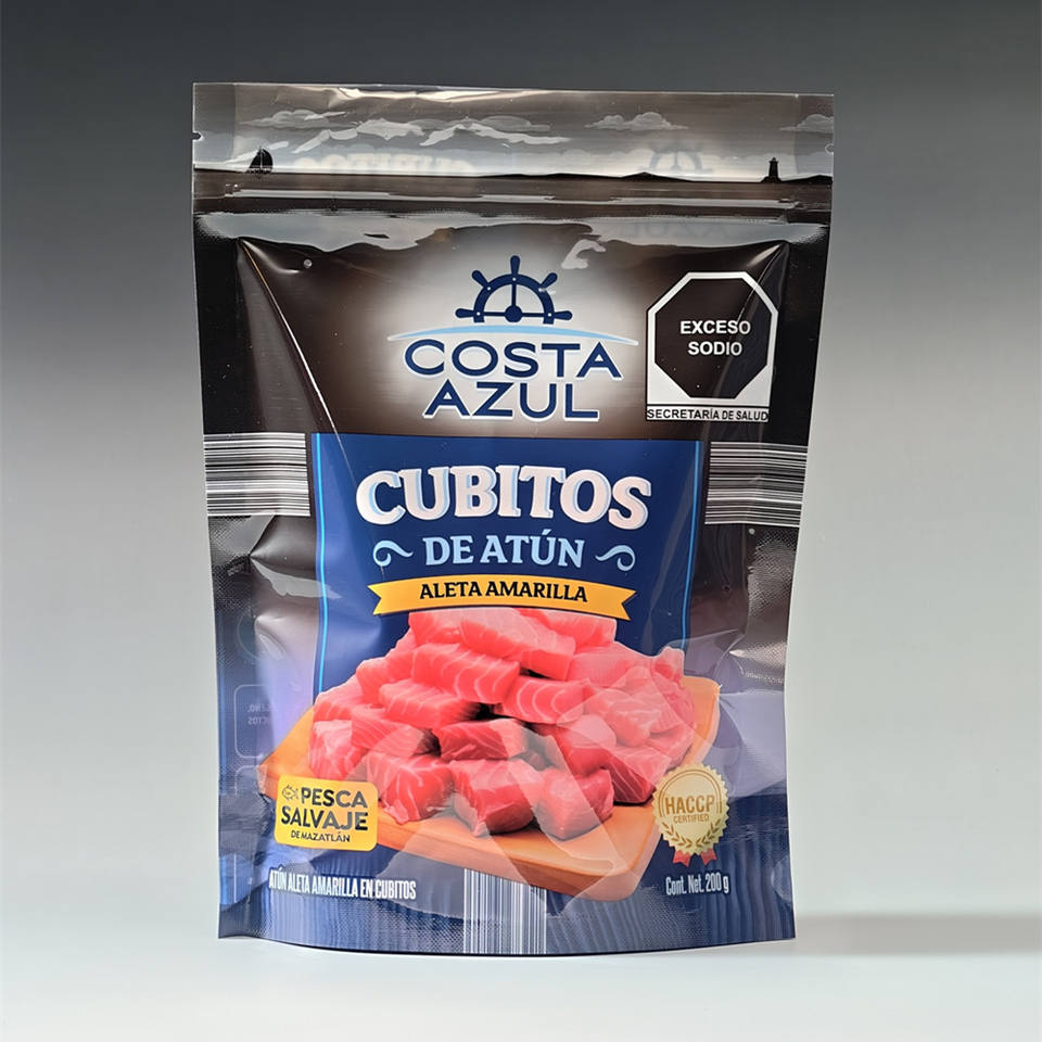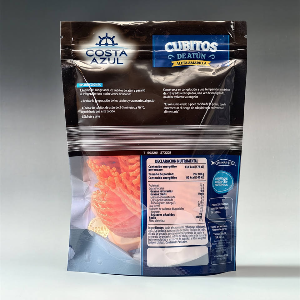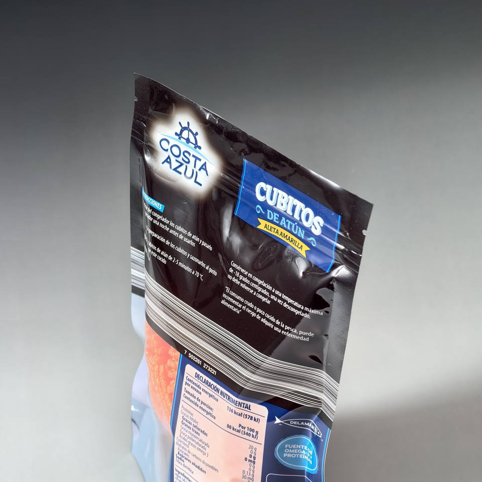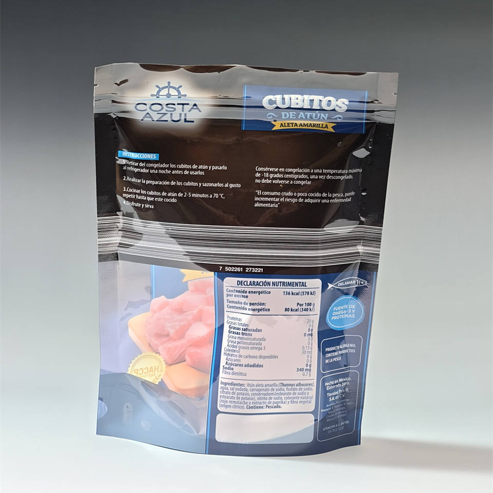 Bolsa con Cierre de PET Reciclable Impresa Personalizada con Impresión por Tampografía, Bolsa Vertical OEM para Envasado de Atún y Mariscos de Marca