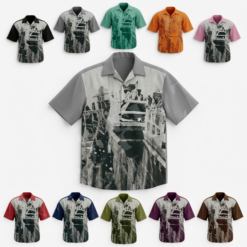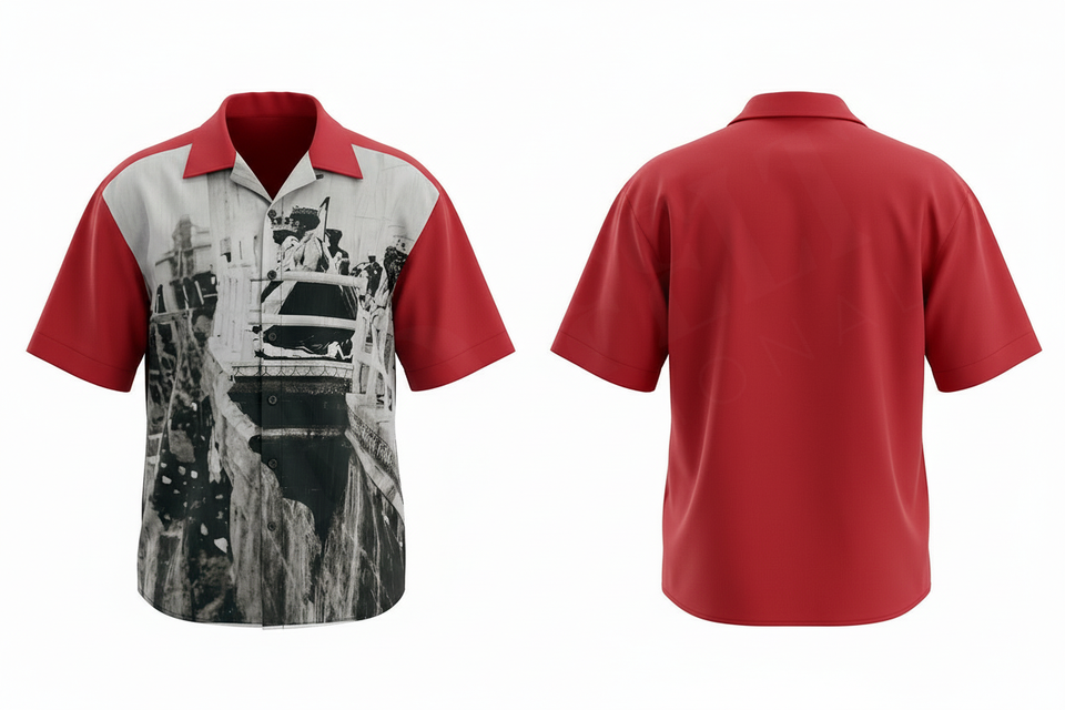 Camisa de Vestir Personalizada con Estampado Gráfico Vintage, Manga Corta, Color Rojo, Estilo Hawaiano, Casual, para Hombre