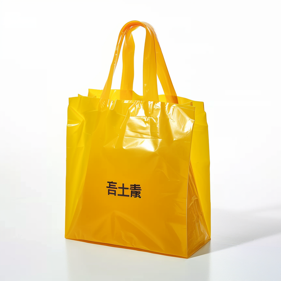 Bolsa de compras de plástico con estampado personalizado para restaurante, bolsa de comida con asa de bucle suave para llevar