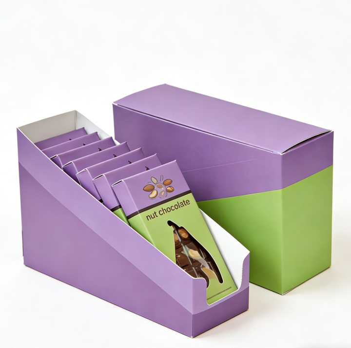 Caja de Exhibición de Papel para Barras de Chocolate, Impresa Personalizada, para Tiendas Minoristas, para Dulces, Bocadillos y Alimentos, con Línea de Corte