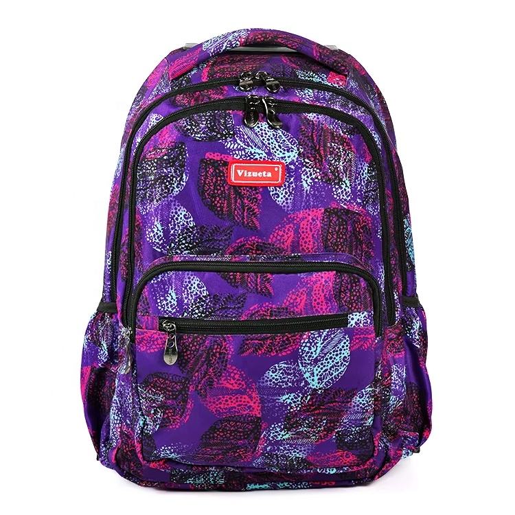 Mochila con ruedas con estampado personalizado, mochila con múltiples bolsillos para estudiantes, mochila con carrito personalizada para niñas, mochila escolar de viaje