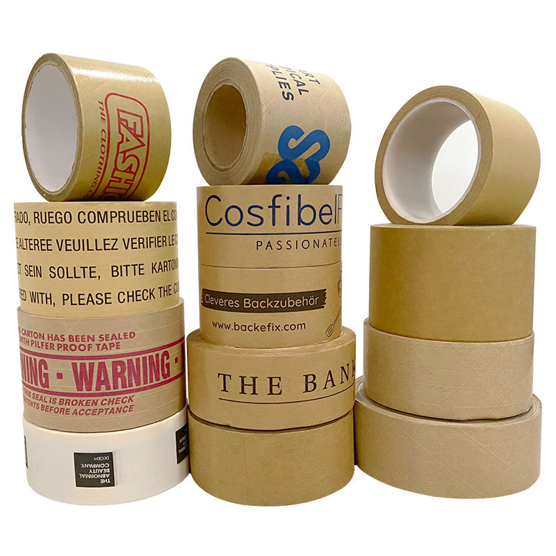 Cinta de Papel Kraft para Sellado de Cajas, Adhesivo de Goma Termofusible de una Cara, Impresión Personalizada, Impermeable, Grosor de 125 micras