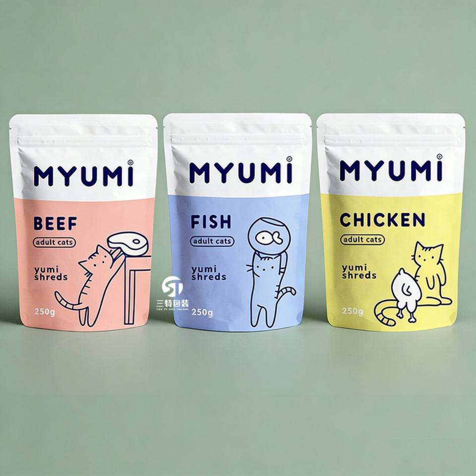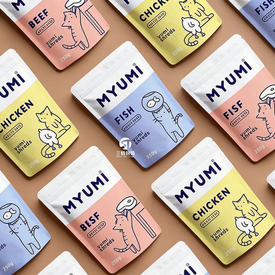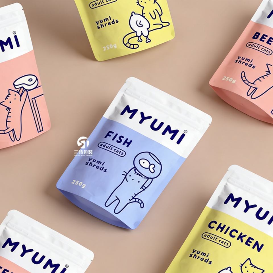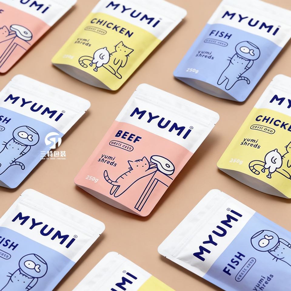 Bolsa de embalaje para alimentos para mascotas con estampado personalizado y cierre tipo stand-up