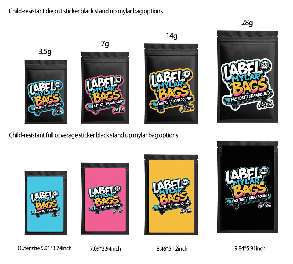 Bolsas Mylar Personalizadas con Cierre a Prueba de Niños, de 3.5g, 28g y 120 Micras de Grosor, para Empacar Hierbas, Dulces, Leche y Gelatina