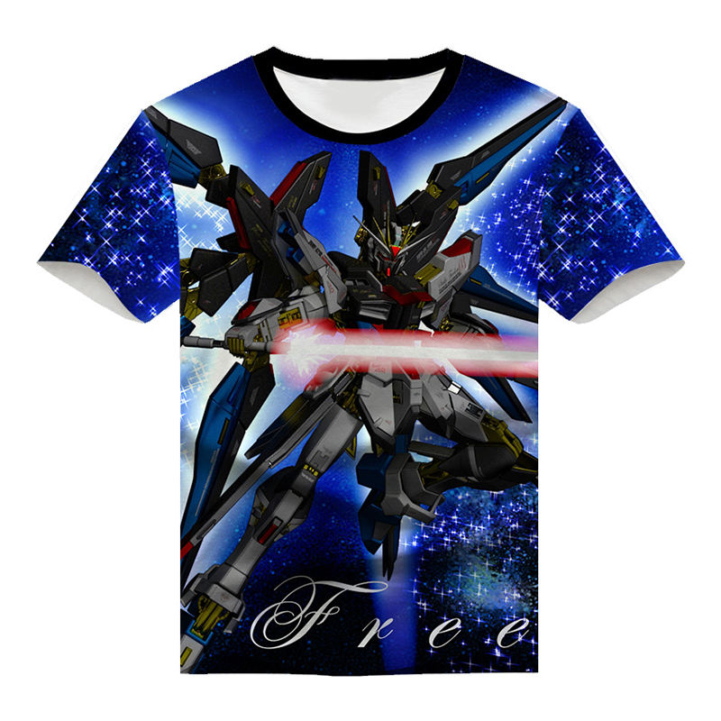 Camisetas de Manga Corta Casuales Inteligentes de Secado Rápido y Sostenibles con Estampado Personalizado para Hombre - Diseño Gundam Strike Freedom