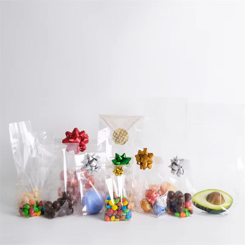 Bolsas de plástico de celofán transparente con impresión personalizada Bopp/opp con fondo cruzado cuadrado para dulces/PAN/comida