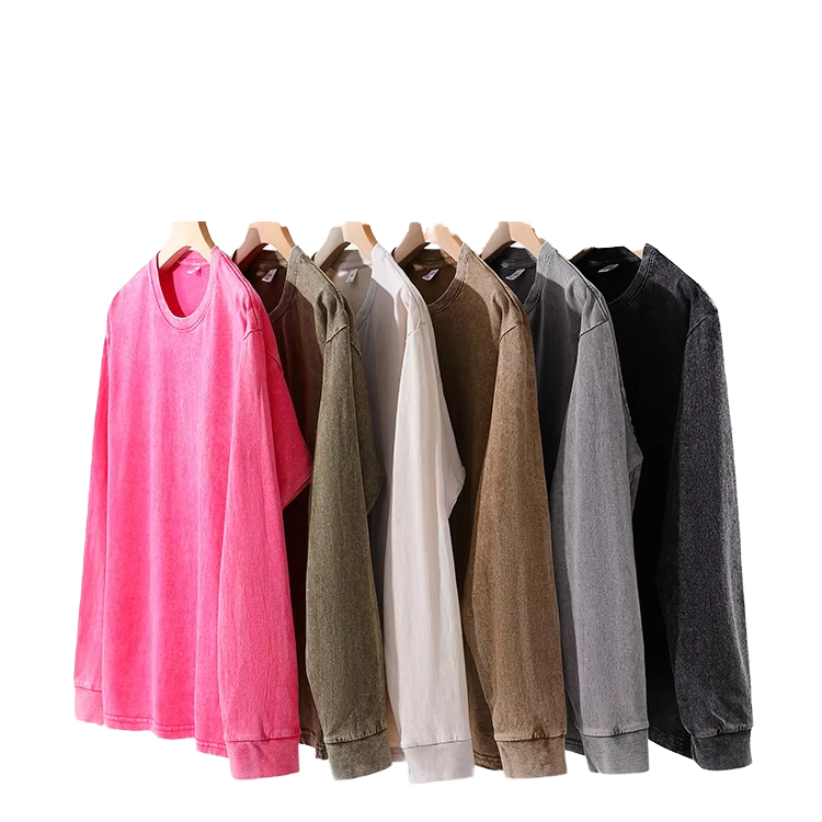 Camiseta de Manga Larga para Hombre, Estilo Vintage, Lavada al Ácido, Personalizada, 100% Algodón, Retro