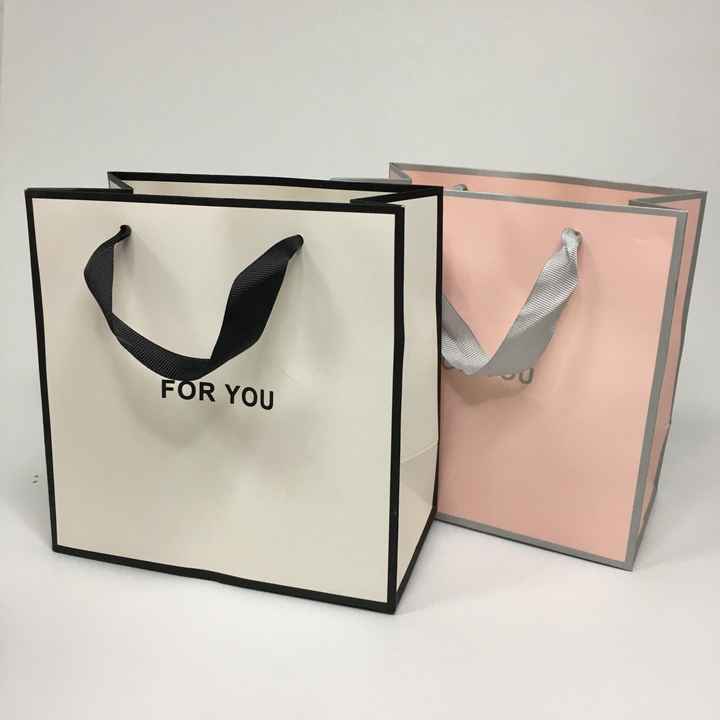 Bolsa de Papel Blanca Impresa Personalizada, Ecológica, Pequeña, Mini Bolsa de Regalo Rosa, Empaque con Asa de Listón y su Propio Logotipo