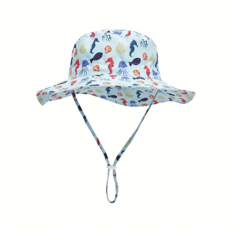 Sombrero de Pescador con Estampado Personalizado de Animales de Dibujos Animados para Niños, para Uso Diario, con Cordón para un Ajuste Seguro, para Primavera y Verano