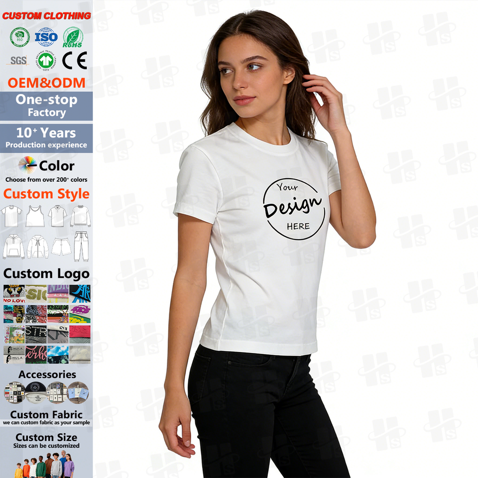 Colección de camisetas impresas personalizadas para mujer, camisetas gráficas de gran tamaño de algodón, blusas cortas con corsé para verano, moda, logotipo personalizado
