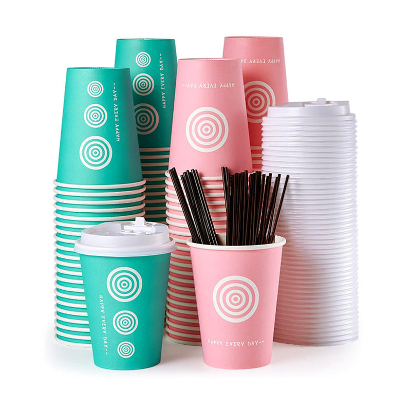 Vasos de Papel Desechables Ecológicos de Pared Simple de 8oz, 12oz y 16oz con Impresión Personalizada, Vaso de Papel para Café Caliente con Mangas y Tapas