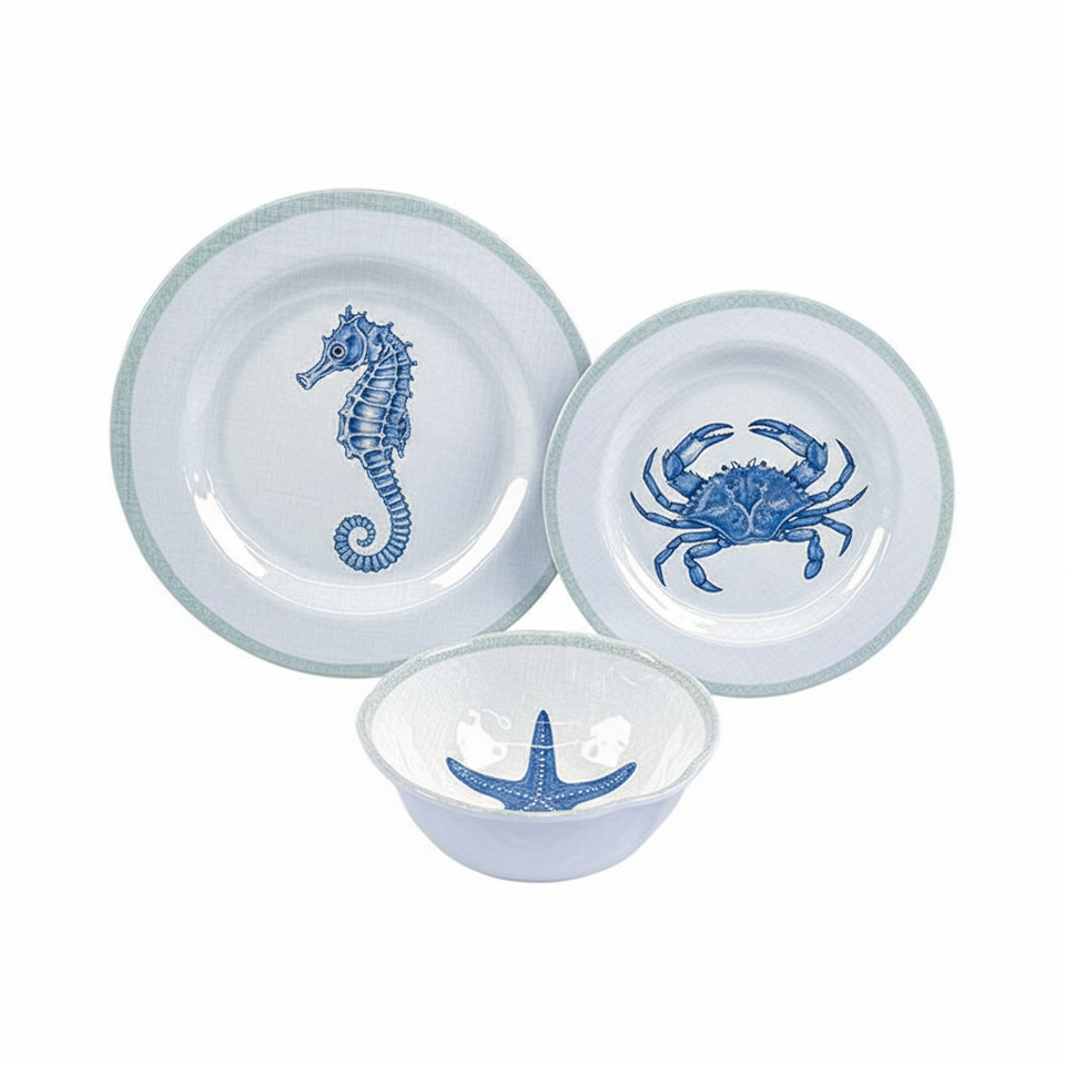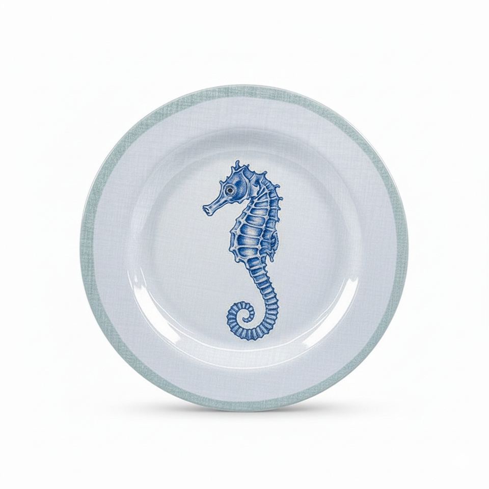 Vajilla de Melamina A5 con Diseño de Concha Marina Azul, Impresión Personalizada, Apta para Alimentos, Libre de BPA, Ecológica, Duradera y Segura para la Cocina