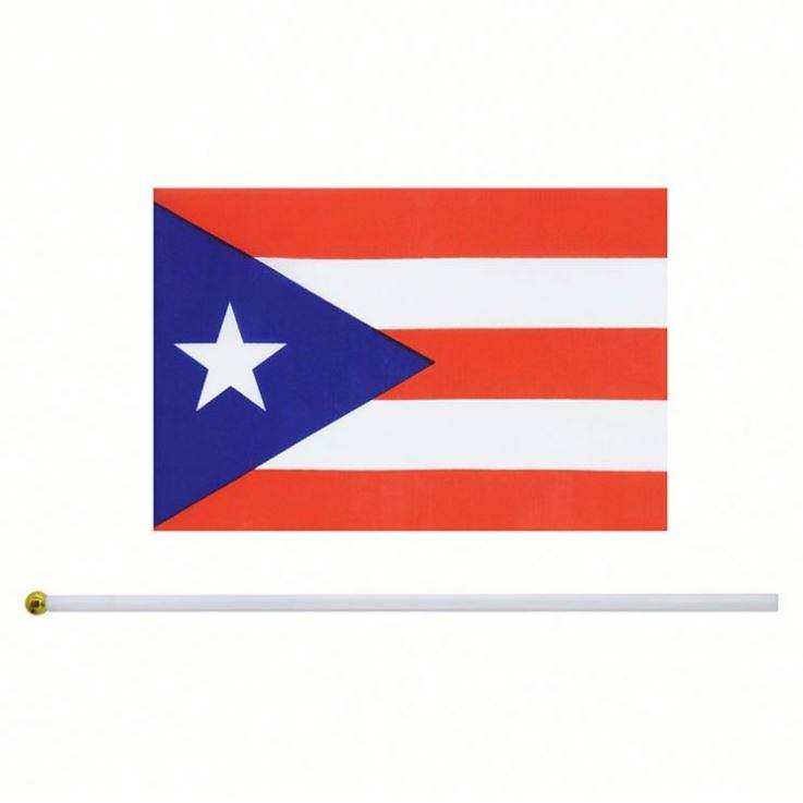 Impresión Personalizada, Venta al por Mayor, Bandera Pequeña de Puerto Rico 100% Poliéster 14x21cm, Mini Bandera Puertorriqueña de Mano con Asta