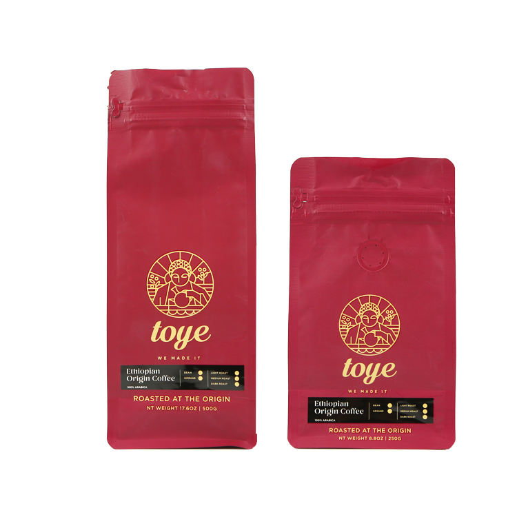 Bolsa de embalaje de granos de café con válvula unidireccional, impresión personalizada, fondo plano