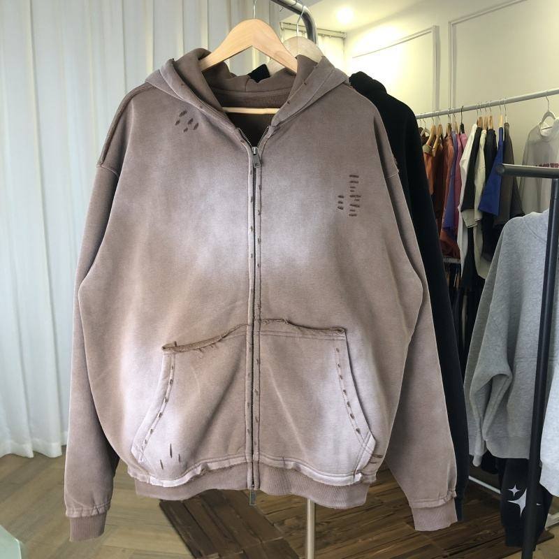 Impresión personalizada Heavyweight 400gsm Acid Wash Distressed Vintage Oversized Zip-up