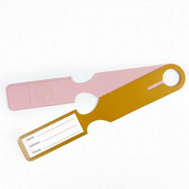Etiqueta de equipaje de cuero de doble cara con logotipo personalizado en oro caliente, diseño hueco de avión