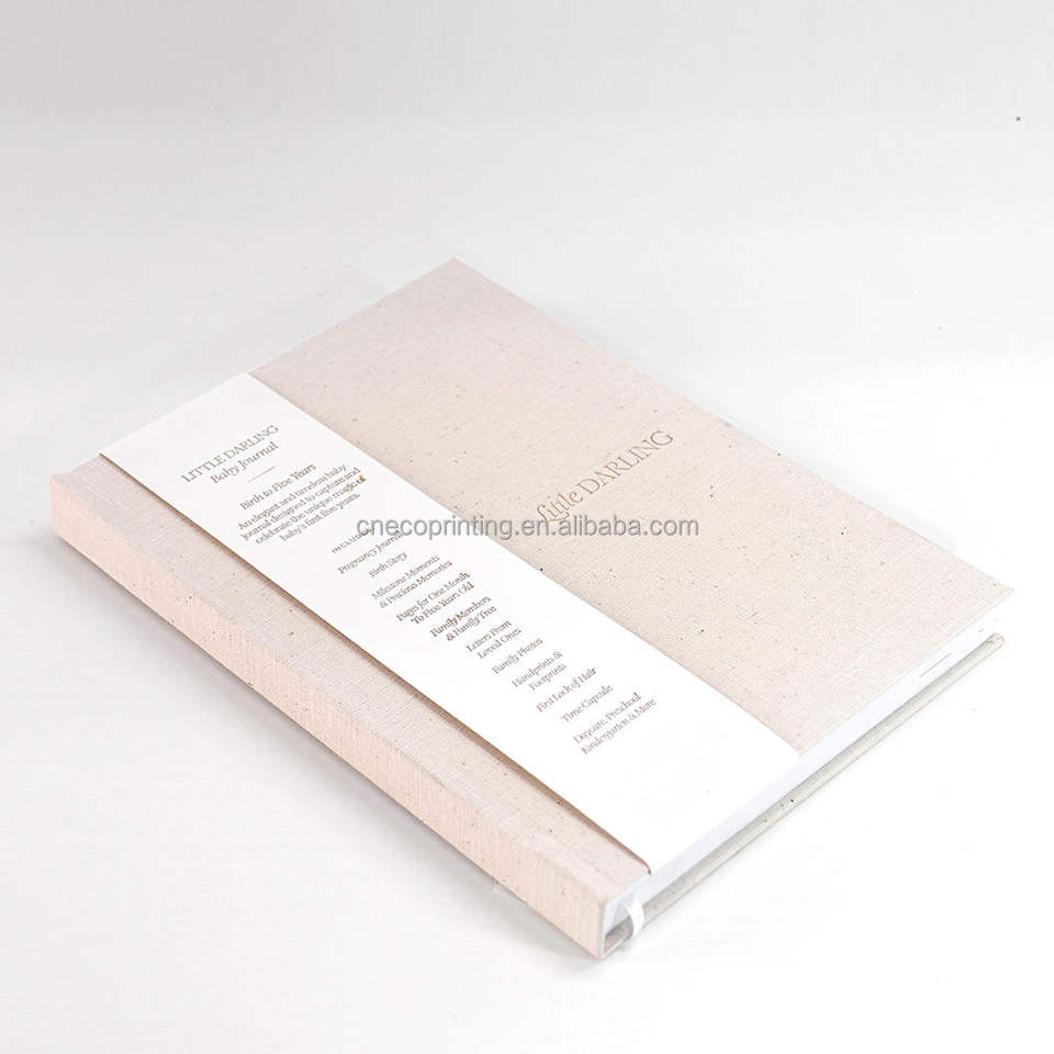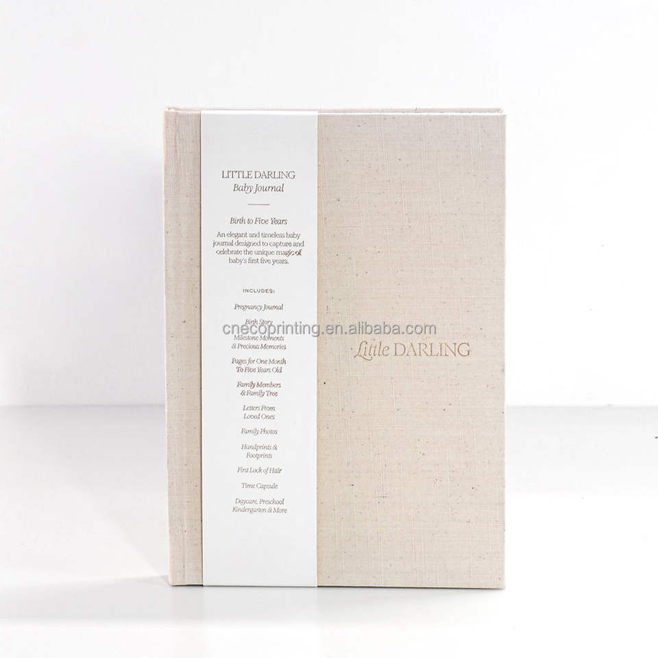 Diario de Bebé con Cubierta de Lino Color Marfil, Impresión Personalizada, para Regalo de Baby Shower