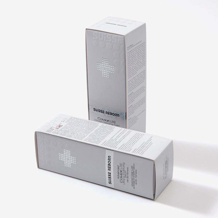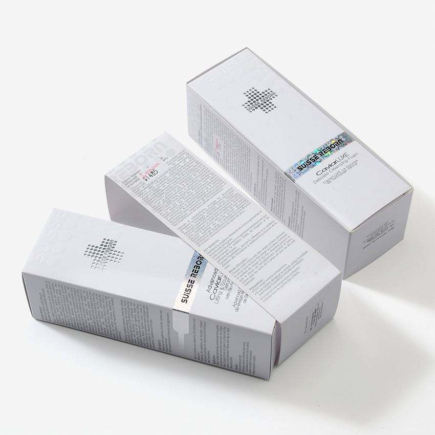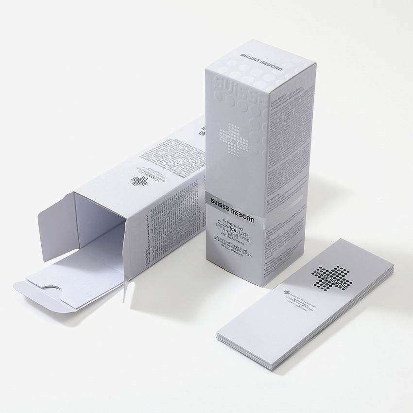 Impresión personalizada de la tarjeta del logotipo de la caja de papel de embalaje cosmético con cajas de cosméticos en relieve