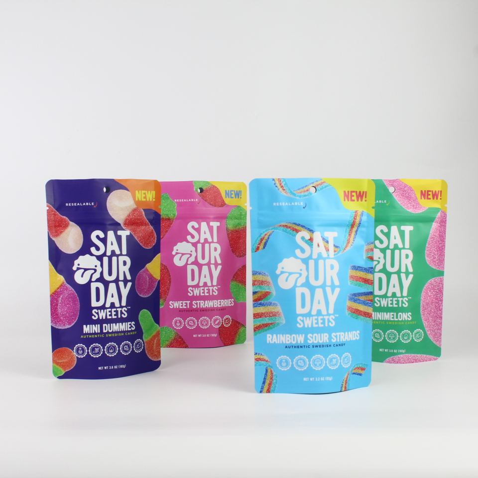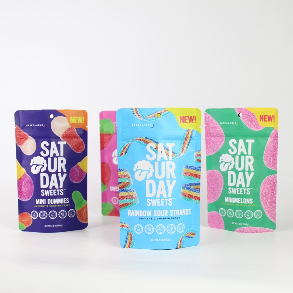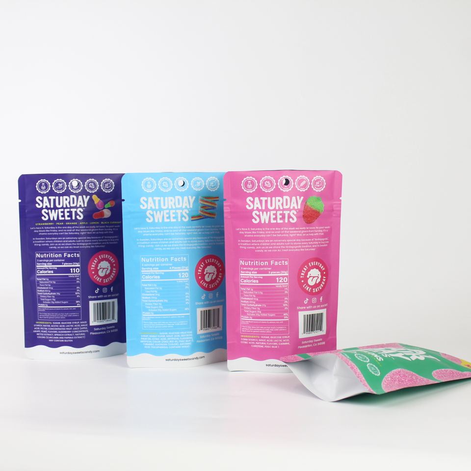 Logotipo de impresión personalizado Reciclable Palomitas de maíz Dulces Embalaje de alimentos Aprobado por La FDA Bolsas con cremallera resellables Bolsa de pie