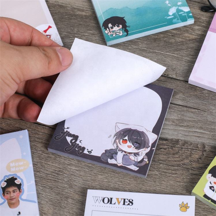 Logotipo de impresión personalizado autoadhesivo lindo estacionario Kpop Bloc de notas Kawaii animales lindos papel notas adhesivas