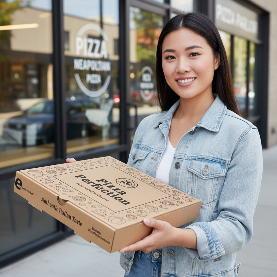 Caja de Pizza Personalizada con Impresión a Medida para Empaque de Comida Rápida, Caja de Entrega de Pizza para Restaurante y Cafetería