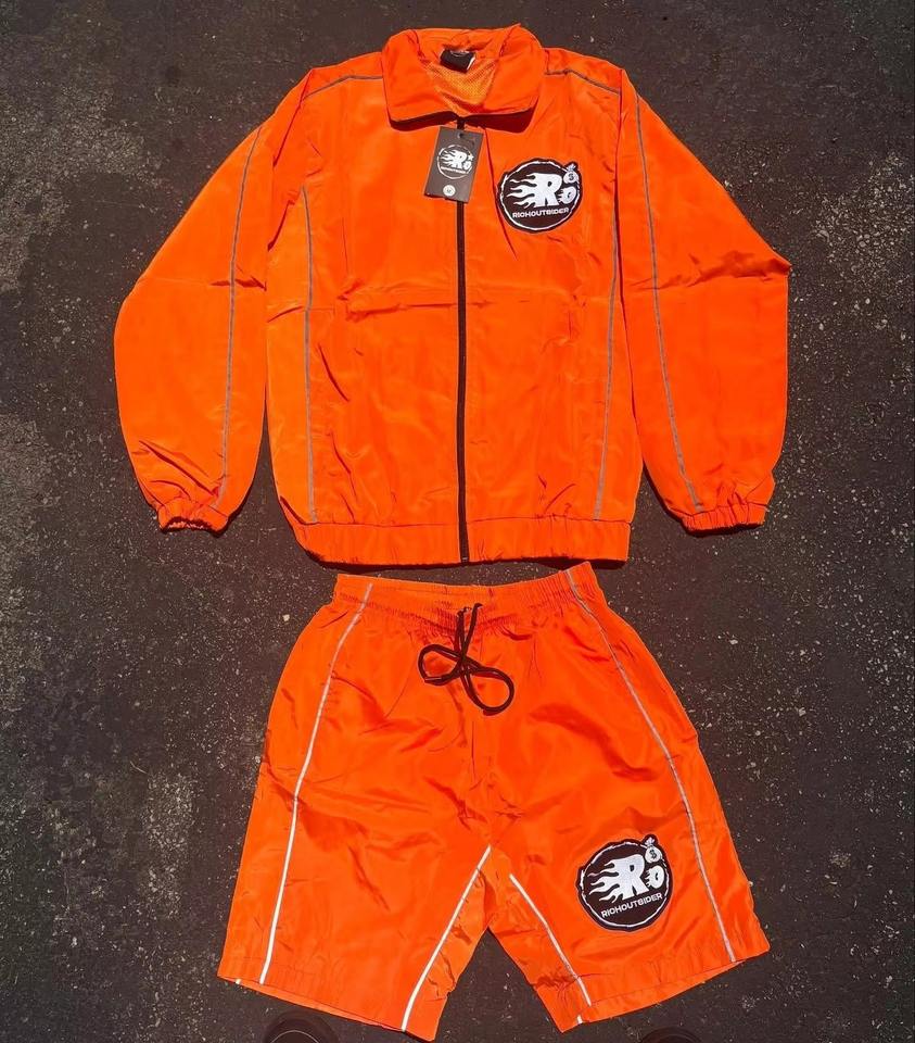 Conjuntos de Pantalones Cortos con Cierre y Chaqueta de Manga Larga con Estampado Personalizado, Conjunto Deportivo de Pantalones Cortos Cortavientos de Poliéster y Nailon para Hombre