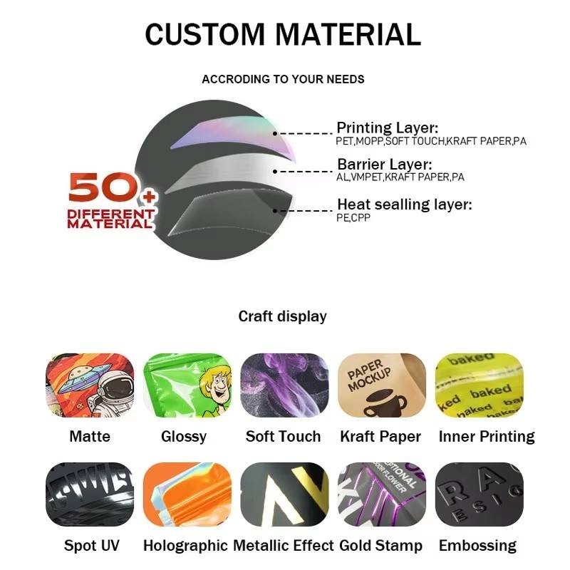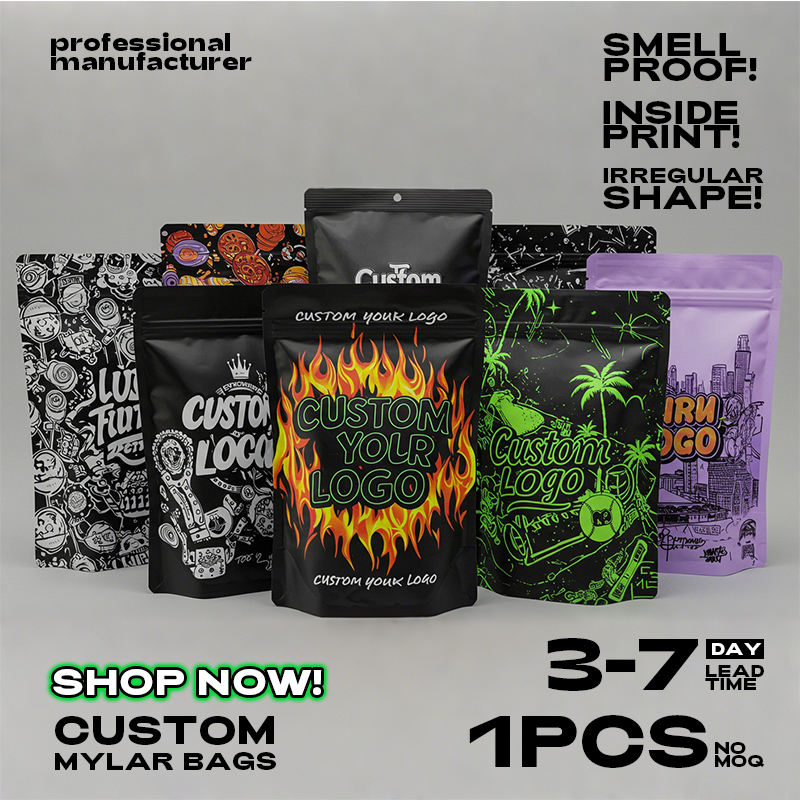 Bolsa de Papel de Aluminio Mylar con Cierre Hermético, Personalizable con su Propio Logotipo, para Alimentos, Resistente a Olores, Reutilizable, 3.5g 7g 1oz