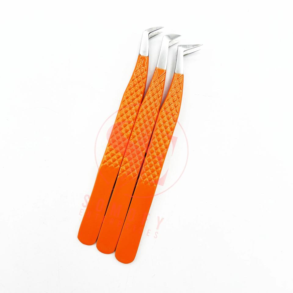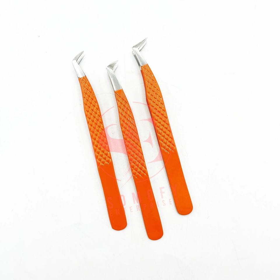 Pinzas de extensión de pestañas de acero inoxidable con etiqueta privada personalizada 45/75/90 grados Nano agarre Punta de fibra tipo volumen pinzas para pestañas