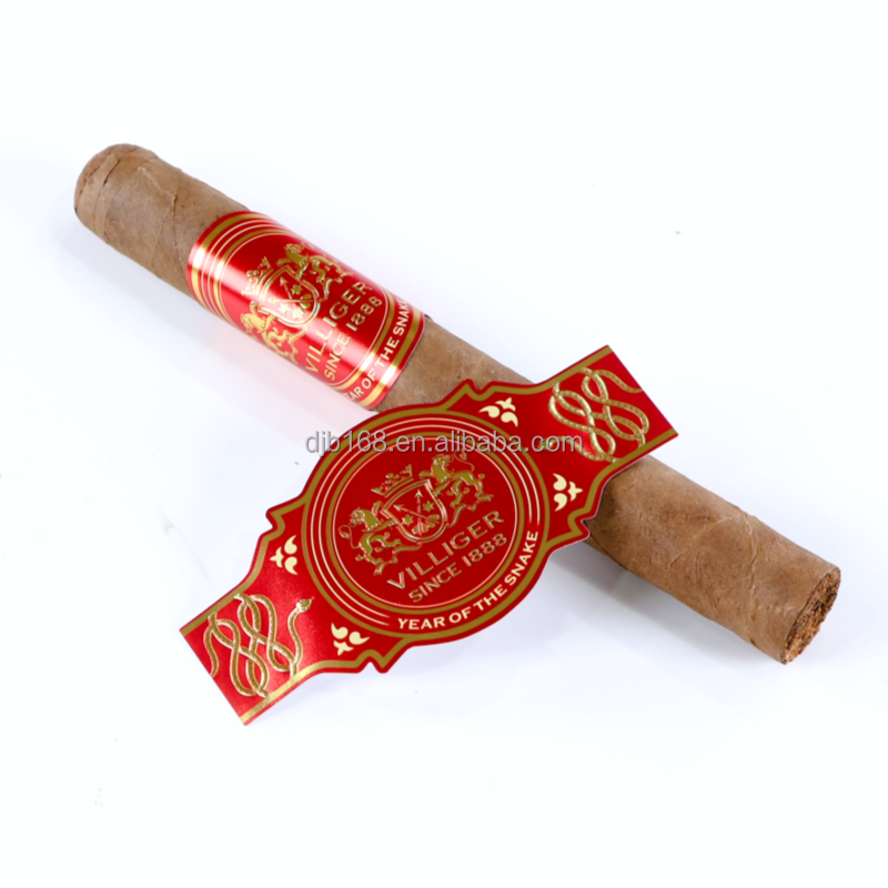 Logotipo privado personalizado diseño de impresión hoja de oro arte papel cigarro bandas anillo pegatina en relieve cubano cigarro etiquetas