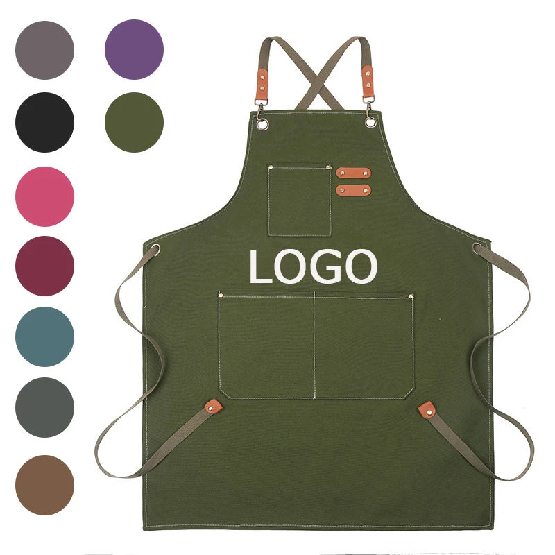 Delantal de babero de servidor de cocina de algodón ajustable profesional personalizado