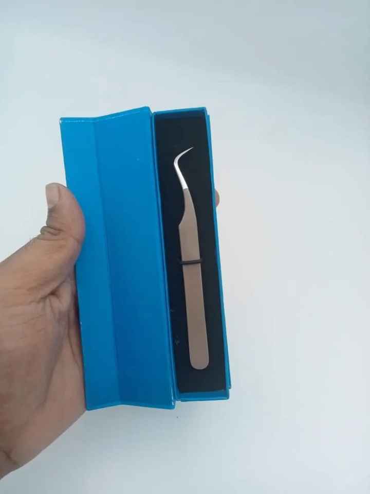Pinzas Profesionales Personalizadas para Extensión de Pestañas, Agarre de Diamante Curvo Resistente, Color Marrón Suave, Puntas Doradas, Gancho de Fibra, Acero Inoxidable