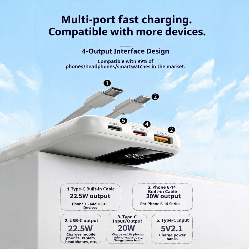 Product name:22.5W PD Fast Charging LED Display Power Bank