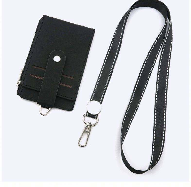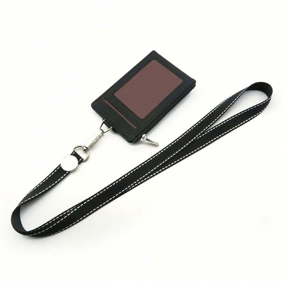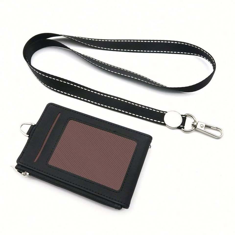 Funda Protectora Personalizada de Cuero PU con Múltiples Ranuras, Porta Tarjetas de Identificación Plegable y Porta Credenciales con Cordones de Poliéster