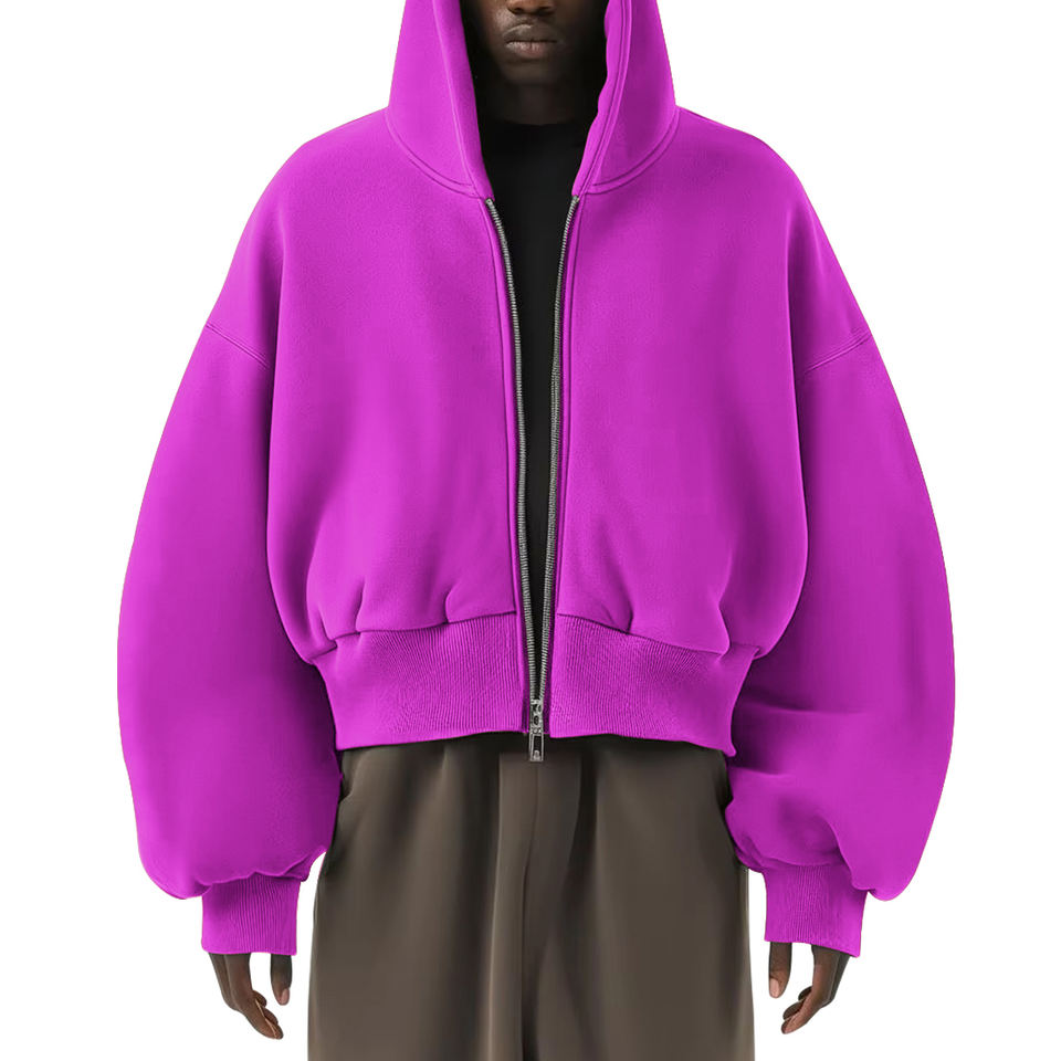 Custom Puff Print Logo Boxy Hoodies con Drop Shoulder Fleece Heavyweight Full Zipper Organic 500GSM Sudadera con capucha para los hombres