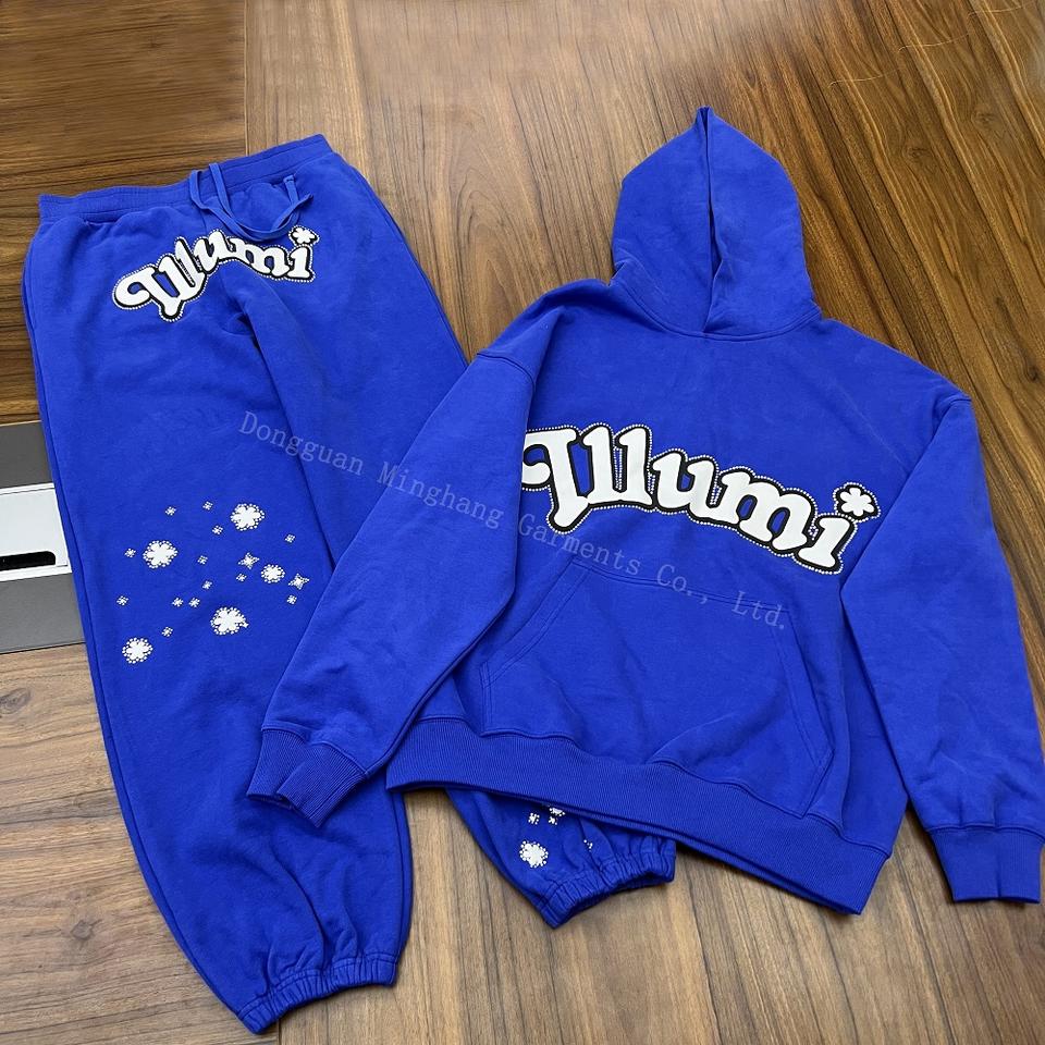 Chándal de algodón de alta calidad con logotipo estampado de soplo personalizado, Sudadera con capucha y conjuntos de Jogger con diseño de diamantes, chándal